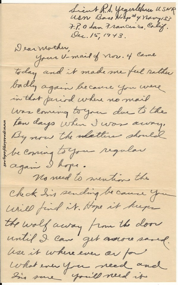 Series I: World War II Correspondence – Roscoe & Gladys (Foster) Yegerlehner, 1942-1946