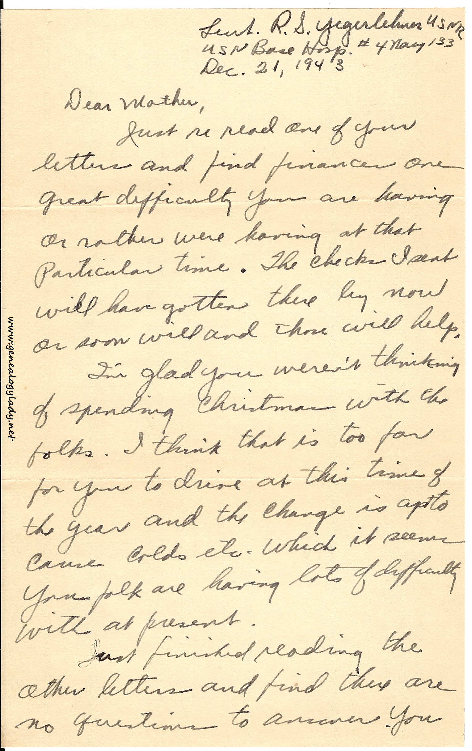 Series I: World War II Correspondence – Roscoe & Gladys (Foster) Yegerlehner, 1942-1946