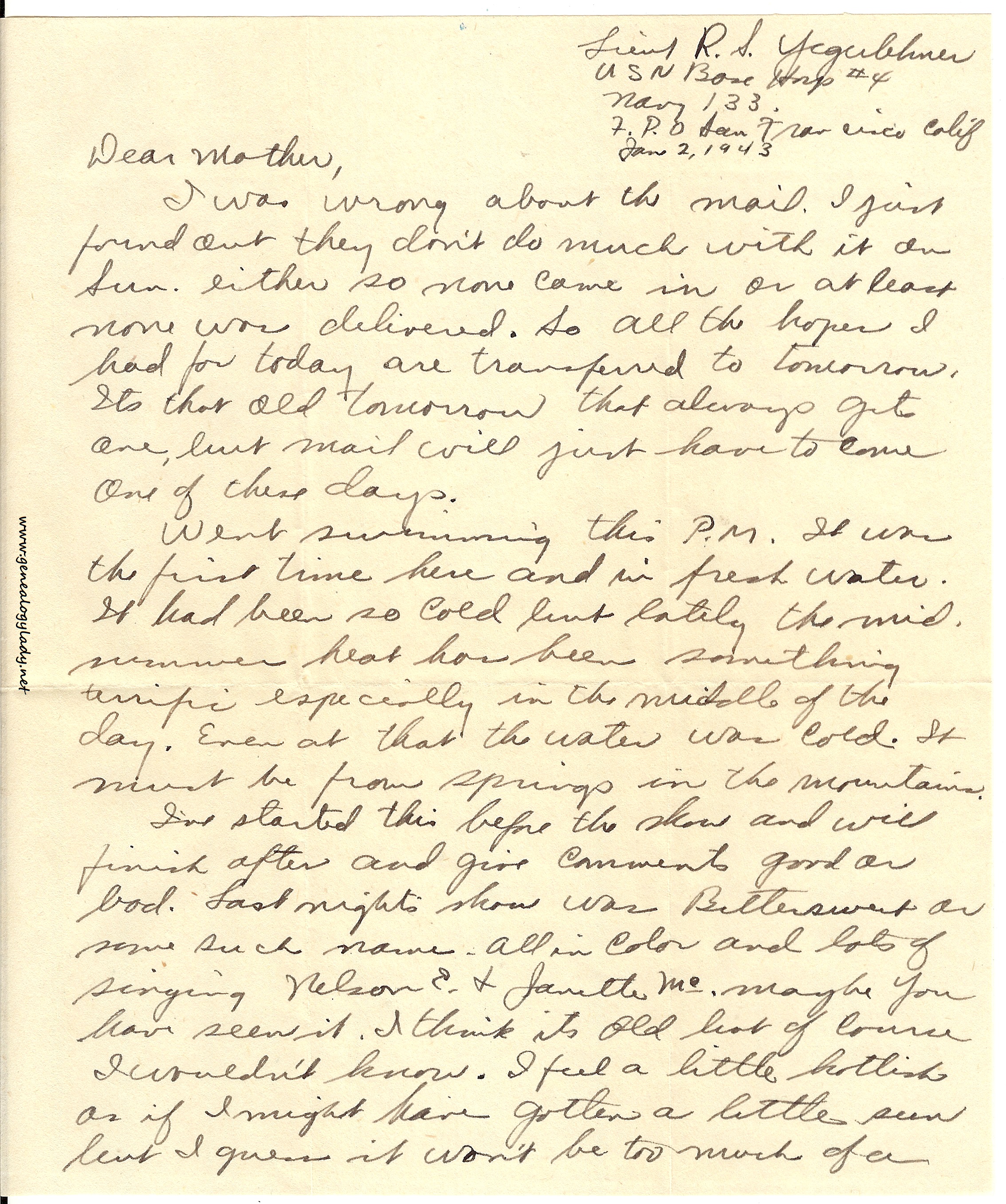 Series I: World War II Correspondence – Roscoe & Gladys (Foster) Yegerlehner, 1942-1946