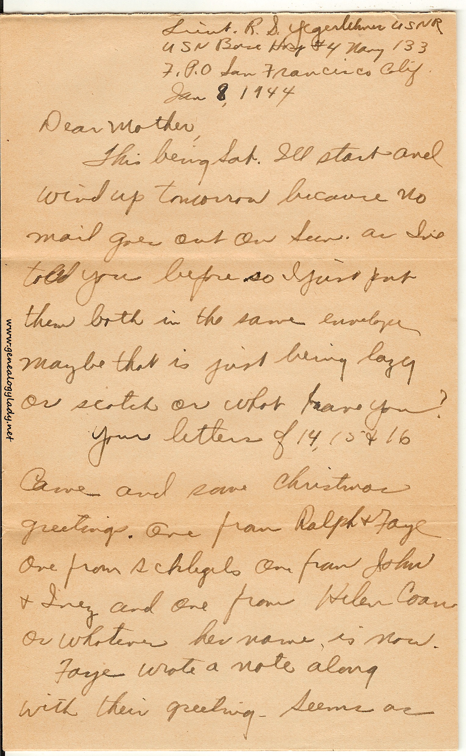 Series I: World War II Correspondence – Roscoe & Gladys (Foster) Yegerlehner, 1942-1946