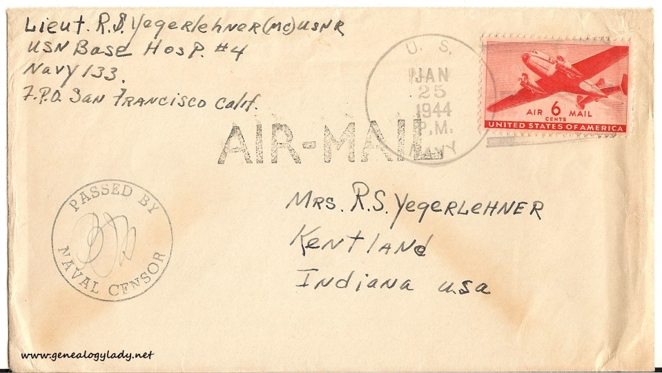 Series I: World War II Correspondence – Roscoe & Gladys (Foster) Yegerlehner, 1942-1946