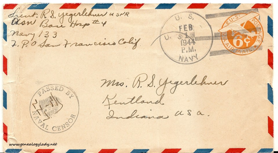 Series I: World War II Correspondence – Roscoe & Gladys (Foster) Yegerlehner, 1942-1946