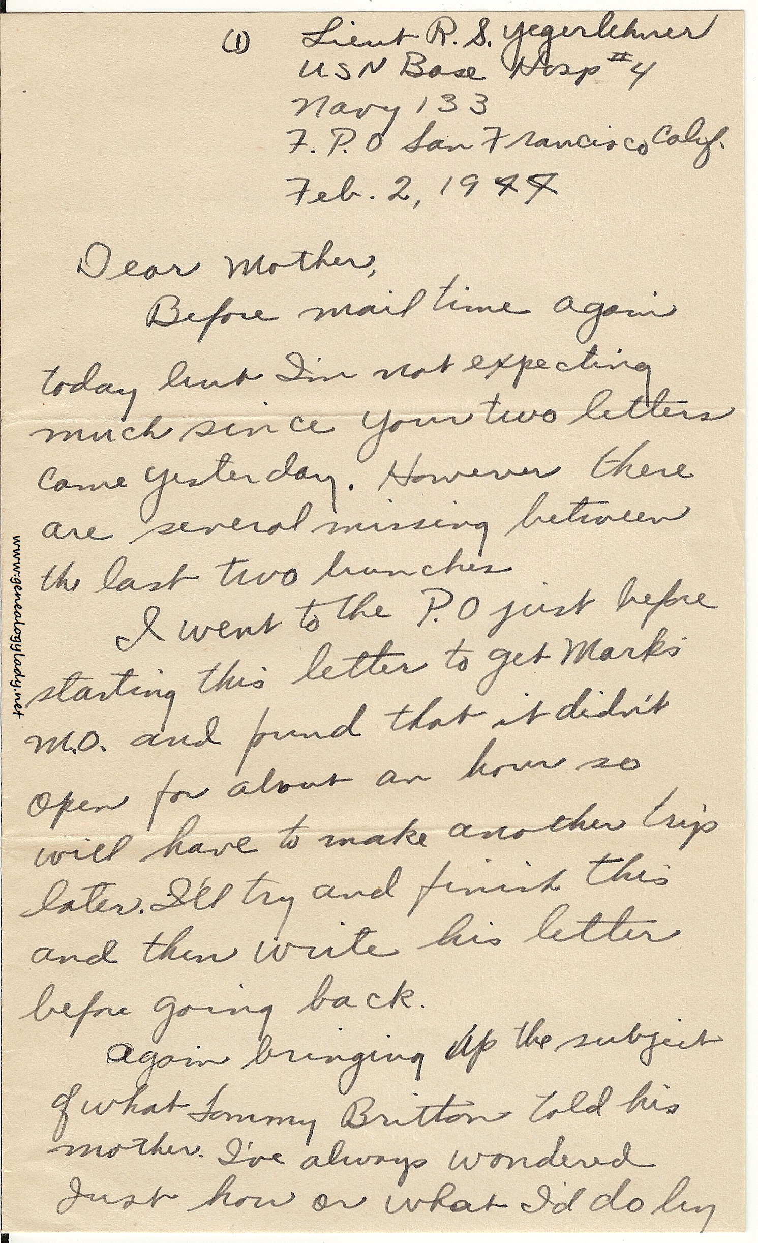 Series I: World War II Correspondence – Roscoe & Gladys (Foster) Yegerlehner, 1942-1946