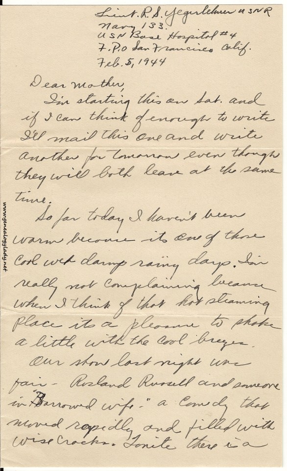 Series I: World War II Correspondence – Roscoe & Gladys (Foster) Yegerlehner, 1942-1946