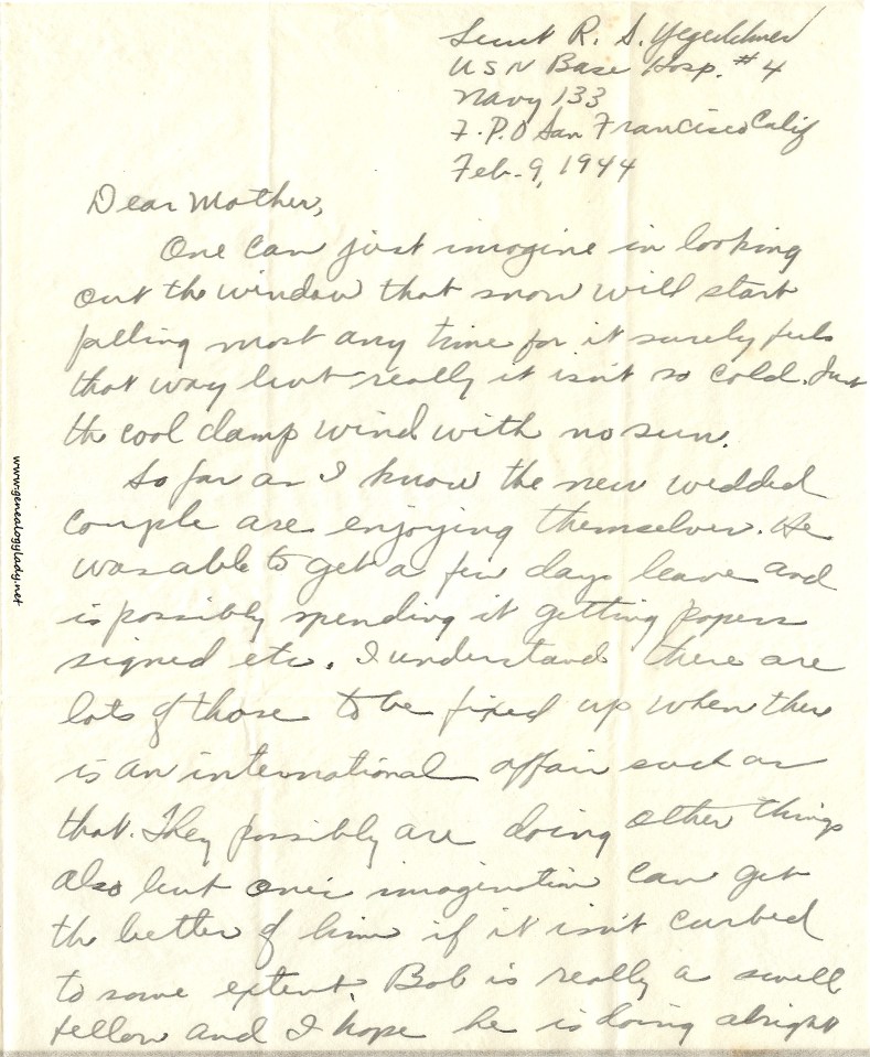 Series I: World War II Correspondence – Roscoe & Gladys (Foster) Yegerlehner, 1942-1946