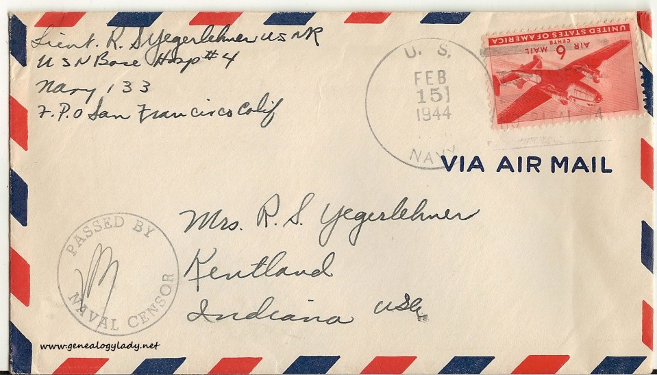Series I: World War II Correspondence – Roscoe & Gladys (Foster) Yegerlehner, 1942-1946
