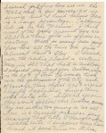 [page 5] Several girls from here are in the W.A.C.S. and a few nurses are in service but I don’t believe there is a large percentage. Catherine Ade is in the Marines. I think most of the girls around town are still at their jobs in offices or factory. With so many men gong from here all the time the girls almost have to stay. I heard over the radio about a certain town in Ill. that had a custom. I should say leap year custom, when on the 29th of Feb. the women took over the government of the city and of course their object was to arrest eligible bachelors, fining them with dates, etc., but this year they won’t follow this custom, reason: “they are either too young or too old.” There is a current popular song bearing that title I thought was rather cute. I suppose you have heard it some time or other,