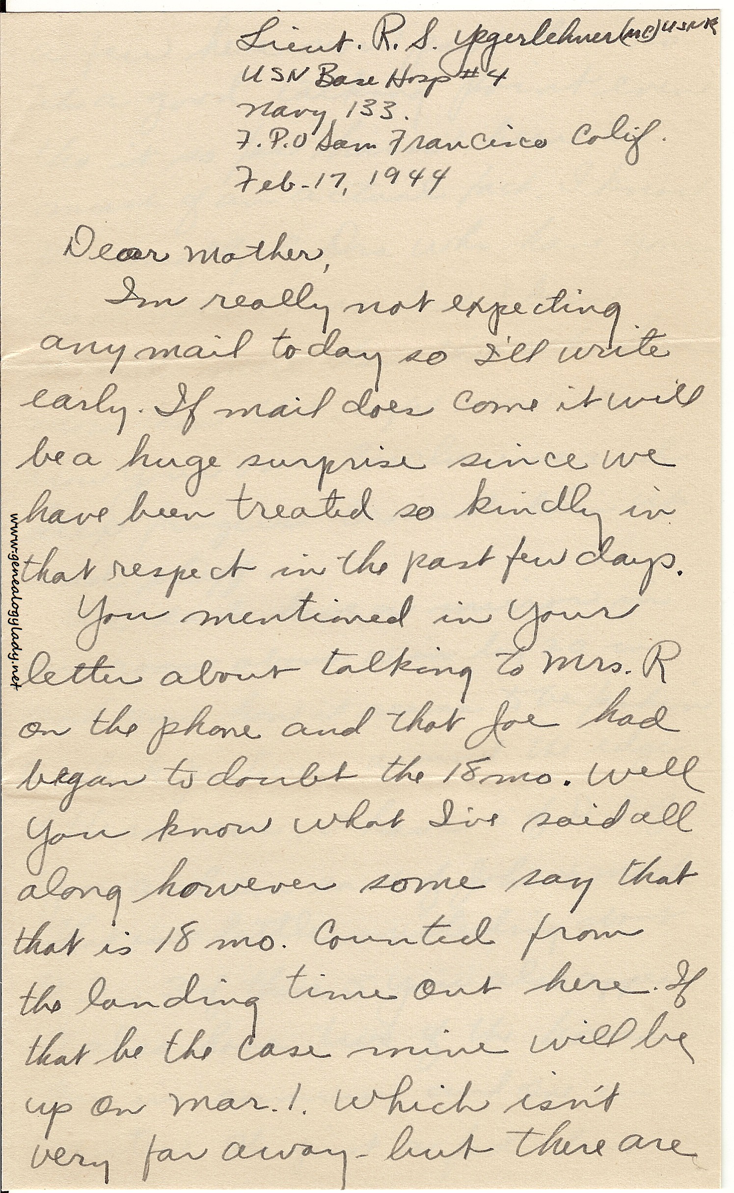 Series I: World War II Correspondence – Roscoe & Gladys (Foster) Yegerlehner, 1942-1946