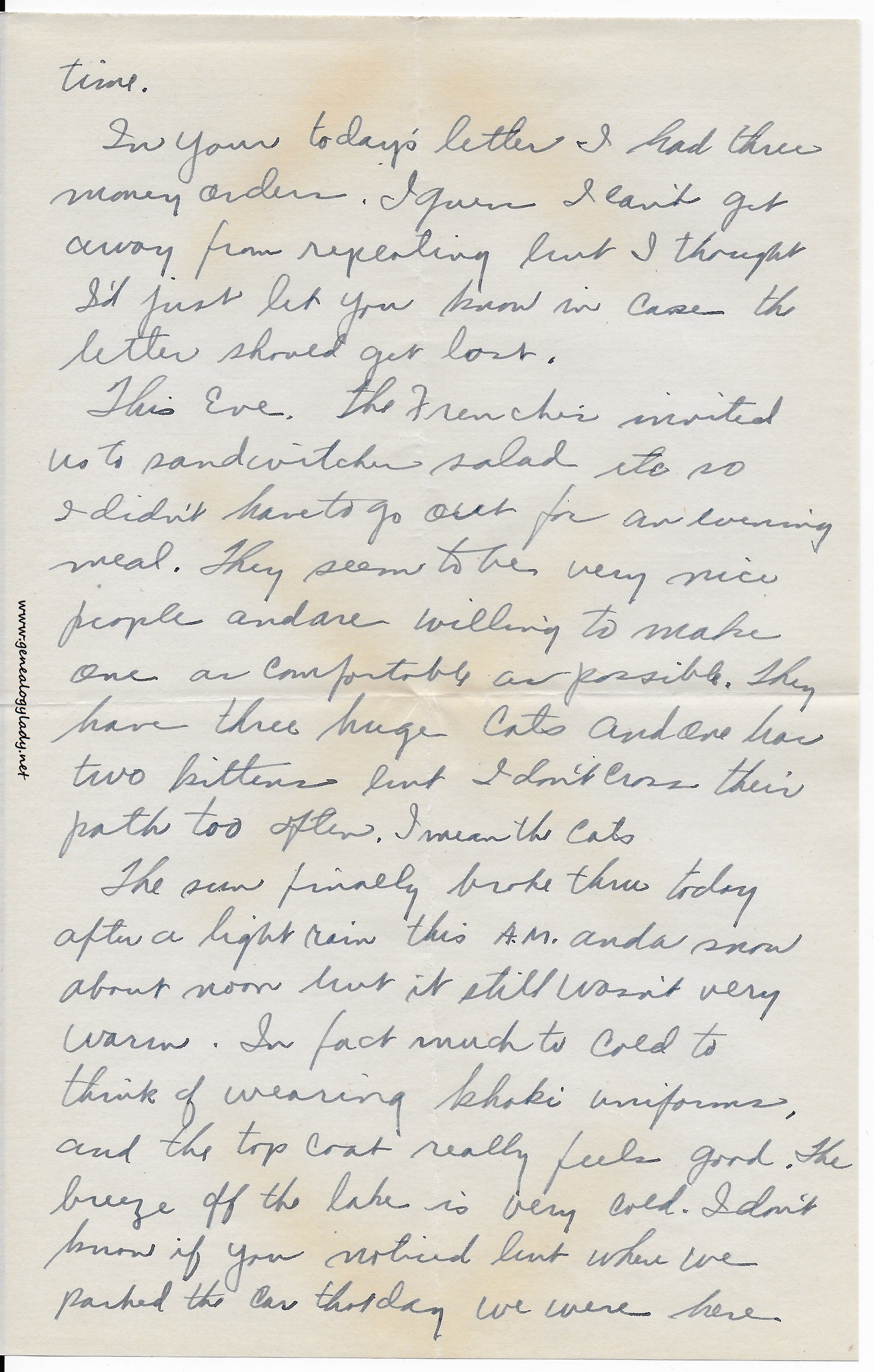 In your today’s letter I had three money orders. I guess I can’t get away from repeating but I thought I’d just let you know in case the letter should get lost.