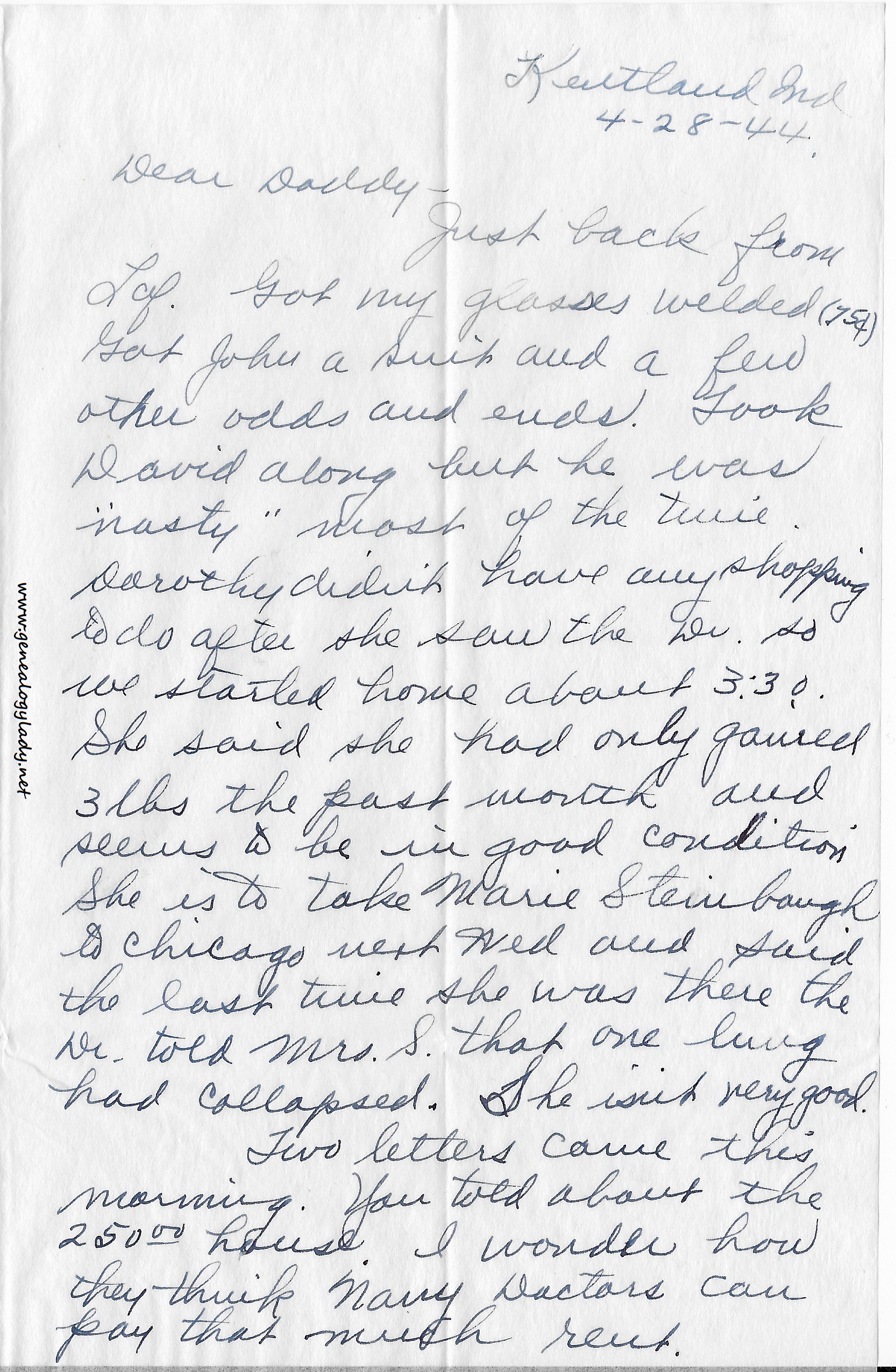 Two letters came this morning. You told about the $250.00 house. I wonder how they think Navy Doctors can pay that much rent.