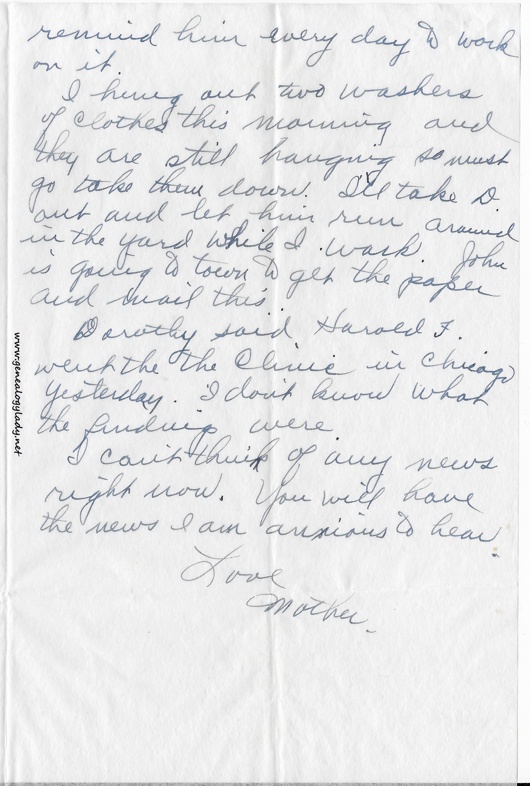Dorothy said Harold F. went to the clinic in Chicago yesterday. I don’t know what the findings were.