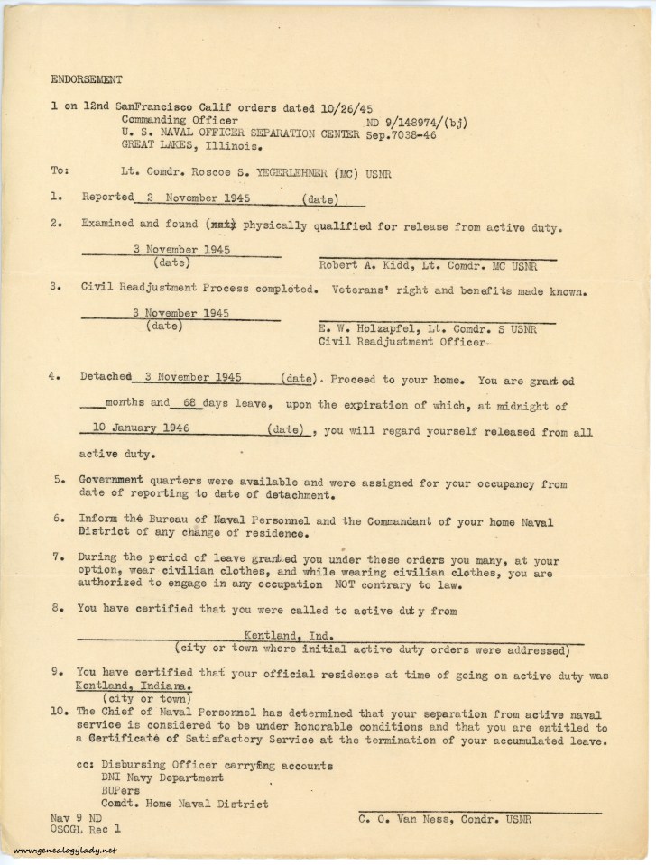 Series I: World War II Correspondence – Roscoe & Gladys (Foster) Yegerlehner, 1942-1946