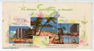 We went out to Dick Ward’s again yesterday afternoon – or I should say he came here and picked us up in his car. We took a short tour of Bishop Museum, then went to their home for dinner. They like to play bridge, so after the children were in bed we had a bridge session. They are so far away from any relatives they seemed to enjoy our visit, last Sunday & yesterday.