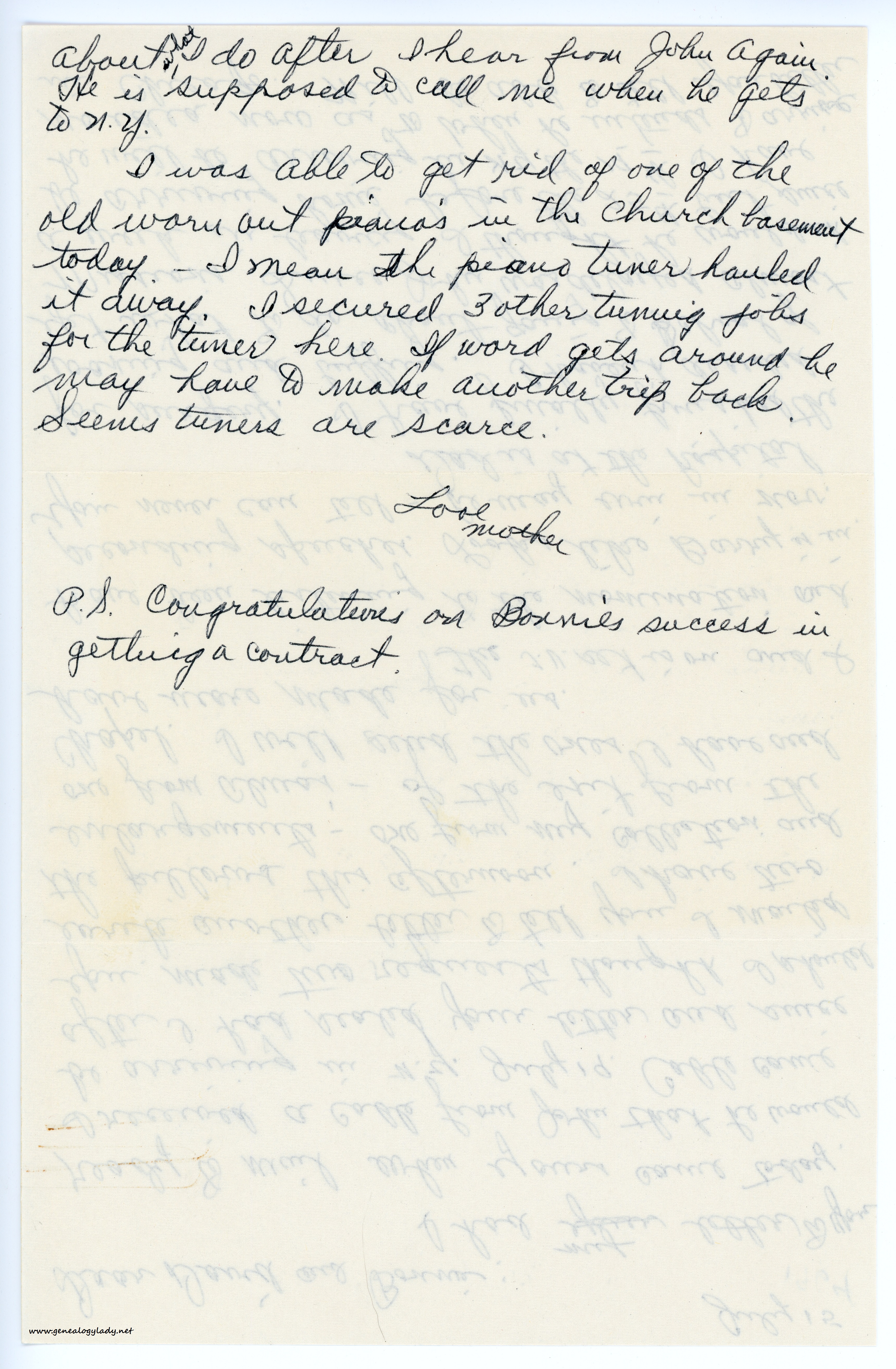 P.S. Congratulations on Bonnie’s success in getting a contract.