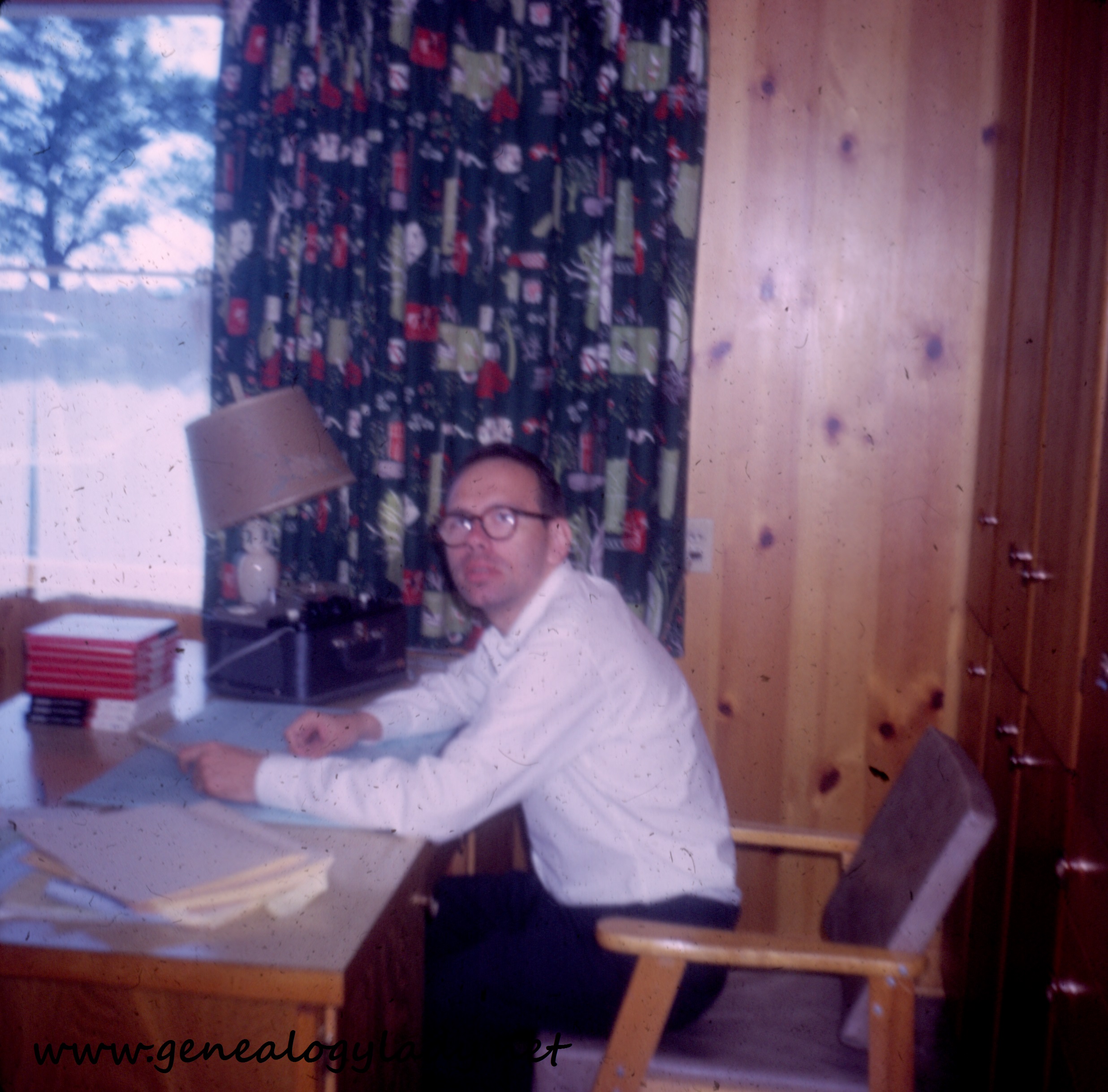 That photo of John: he is sitting at mother’s desk in what I have labeled ‘family room mother’s office’ on the diagram I sent to you. The camera is aimed south, to John’s right is the window facing south.