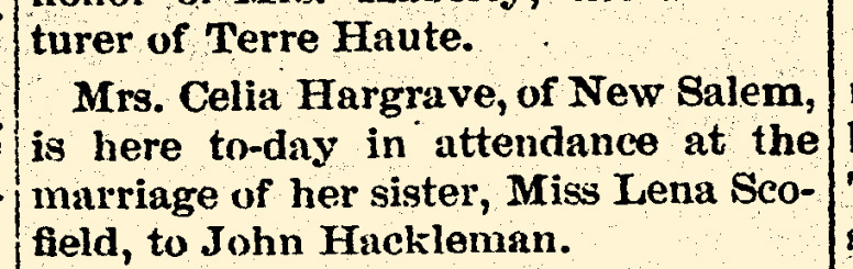Hargrove, Celia (Scofield) – Connersville Daily Examiner, 1894-02-08, p. 4, col. 2
