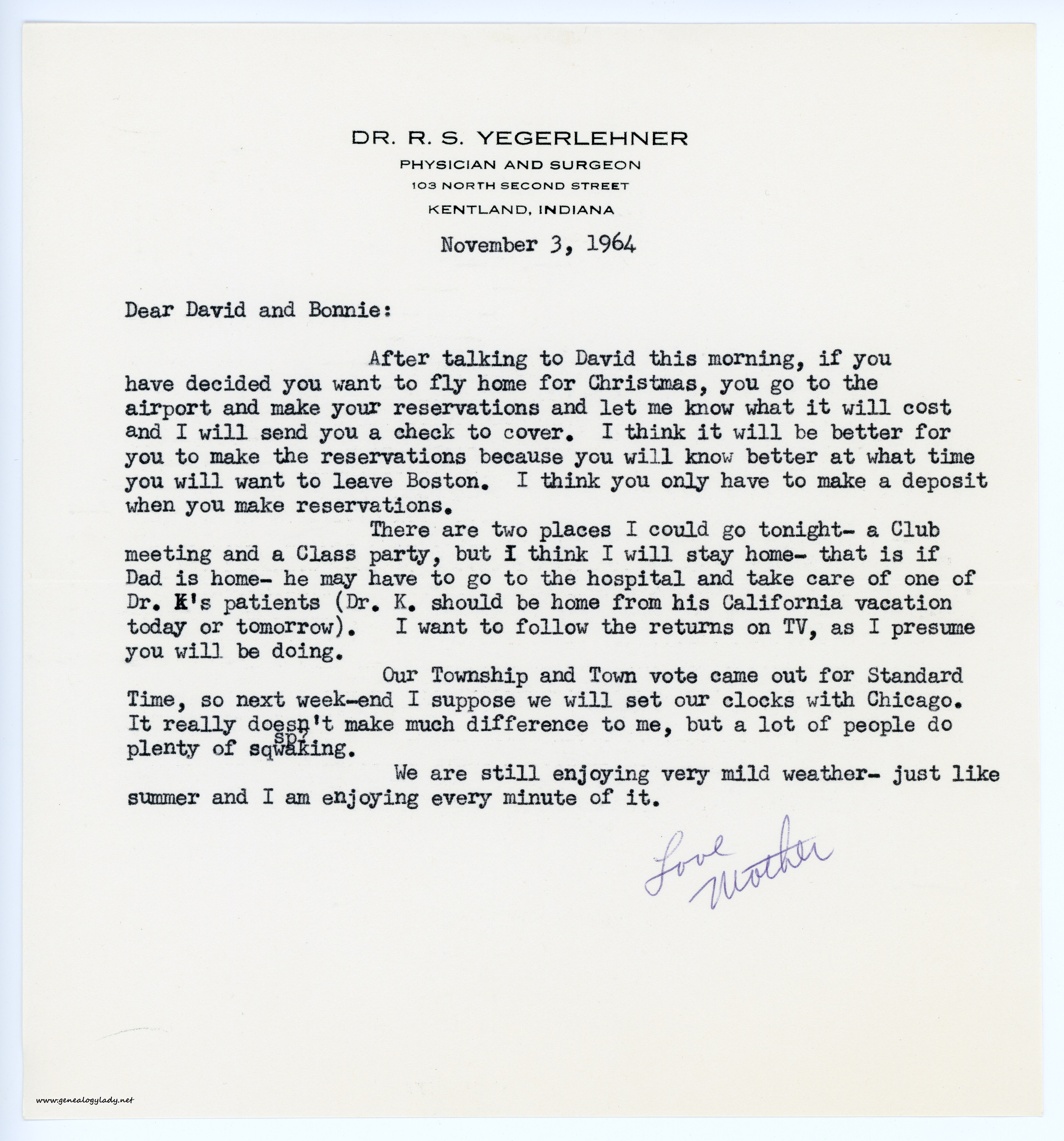 You shouldn’t fret yourself so much about the outcome of Nov. 3. I can remember when H.S.T. won, I went into the Rexall store and Art was ready to commit hara-kiri (almost). He thought the country would go to the dogs for sure. At the last bridge club meeting it was like attending a wake. Everyone was sure B.G. would lose – of course there were a couple who get their living in the court house and it might mean a change of jobs for them. Regardless of the outcome things have a way of adjusting so don’t be so disturbed.