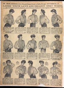 Perhaps one of the most well known events regarding the shirtwaist was the 1911 Triangle Factory fire in New York City. Shirtwaists were very popular and cheap to manufacture. Mail order catalogues as well as clothing stores all sold shirtwaists. See the links below to learn more about the Triangle Factory fire, and PBS’s documentary about this tragedy which killed hundreds of immigrant factory workers. The overwhelming majority of the victims were women.