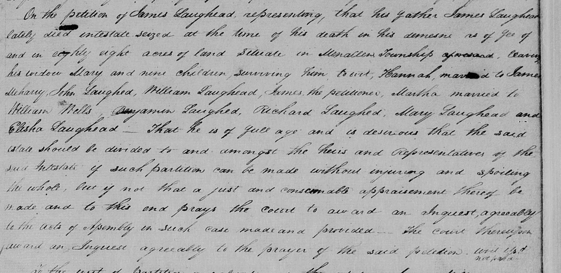 This is a work in progress. Please contact me with any corrections or if you would like to see further documentation. This report was not completely footnoted at the time of its original publication. The purpose of this report was to document the descendants, not necessarily tell individual stories. Future revisions will address these in greater detail. The surname Laughead is spelled phoetically as Lawhead. Some branches of the family chose one version of the name over the other in the 20th century as spelling became formalized. The surname was never Ladd or Lloyd. This confusion is a result of the American soundex system which catalogs Ladd and Lawhead together.