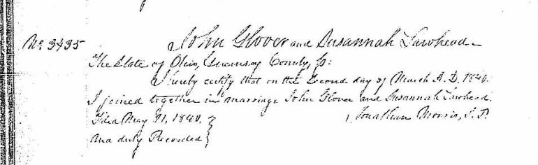 [3] “Indiana Marriages, 1811-2007,” digital image, FamilySearch (http://www.familysearch.org : accessed 25 June 2016), citing Lawrence County marriages, vol. D (1860-1867): 61, Elisha G. Lawhead and Maria McNabb, 13 October 1860.