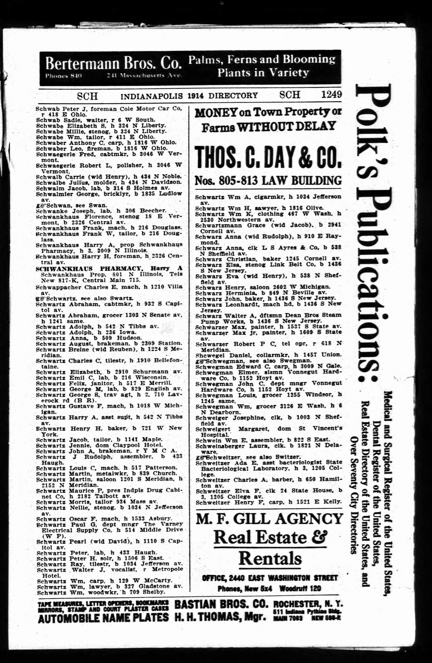 “U.S. City Directories, 1821-1989,” digital image, Ancestry.com (http://www.ancestry.com : accessed 6 May 2014), Indianapolis (1914), Wm Schwartz.