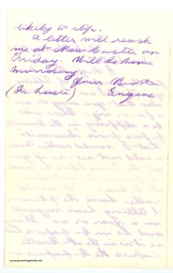 [page 5] long to come. Start here at half past Seven and get to Indianapolis at half past Eleven in night—get to rest there one hour before you could start for B. Then arrive here at half past five in morning. I would meet you at Depo—which is only two blocks from where we live. You I know would enjoy the visit we live in a very pleasant place—we have five rooms & kitchen—I am now in “parlor.” I wish I had your picture please send me one. I am going to get mine taken next week. I had mine taken with a friend here but mine is not good so I will not send you one of them. All the boys are working—and Pa. Lee
