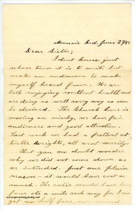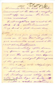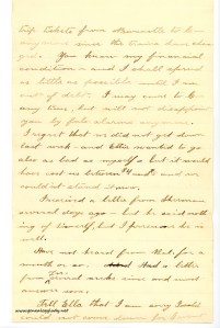 [page 2] also one into kitche, door out of kitchen into woodhouse. We have every thing in order and once more feel at home. We are but 4 squares from Minnie’s, 5 from the Church, 5 from the Post-Office and 3 from the Depot. We live just in the rear of the School house.