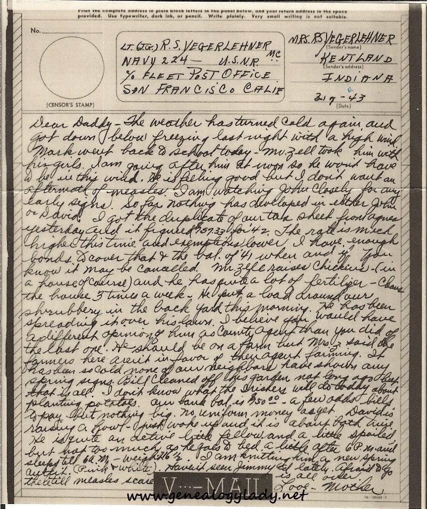 Yours of Jan. 6, 7, 8, & 11 came today. In fact I just finished reading them and thought I would answer while things are fresh in my mind. About that tax $6.60 – that was the first quarter last year gross – I quit paying after that. I talked to Agnes a few days ago and she told me not to file even Federal, so will just let it ride. Our present bank bal. is around $70.oo but all bills are paid. The first of Feb. the income will take care of ins. due (J., M. & D.) and current bills and we should have a good bal. Maybe enough for a bond. David got enough Christmas money to get a new bond. I think J. or M. will get it at school to give their school credit during the present Bond drive.