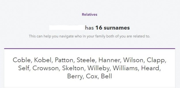 My father has a fourth cousin match on 23andme. There is no tree, but the match provided a list of sixteen surnames.