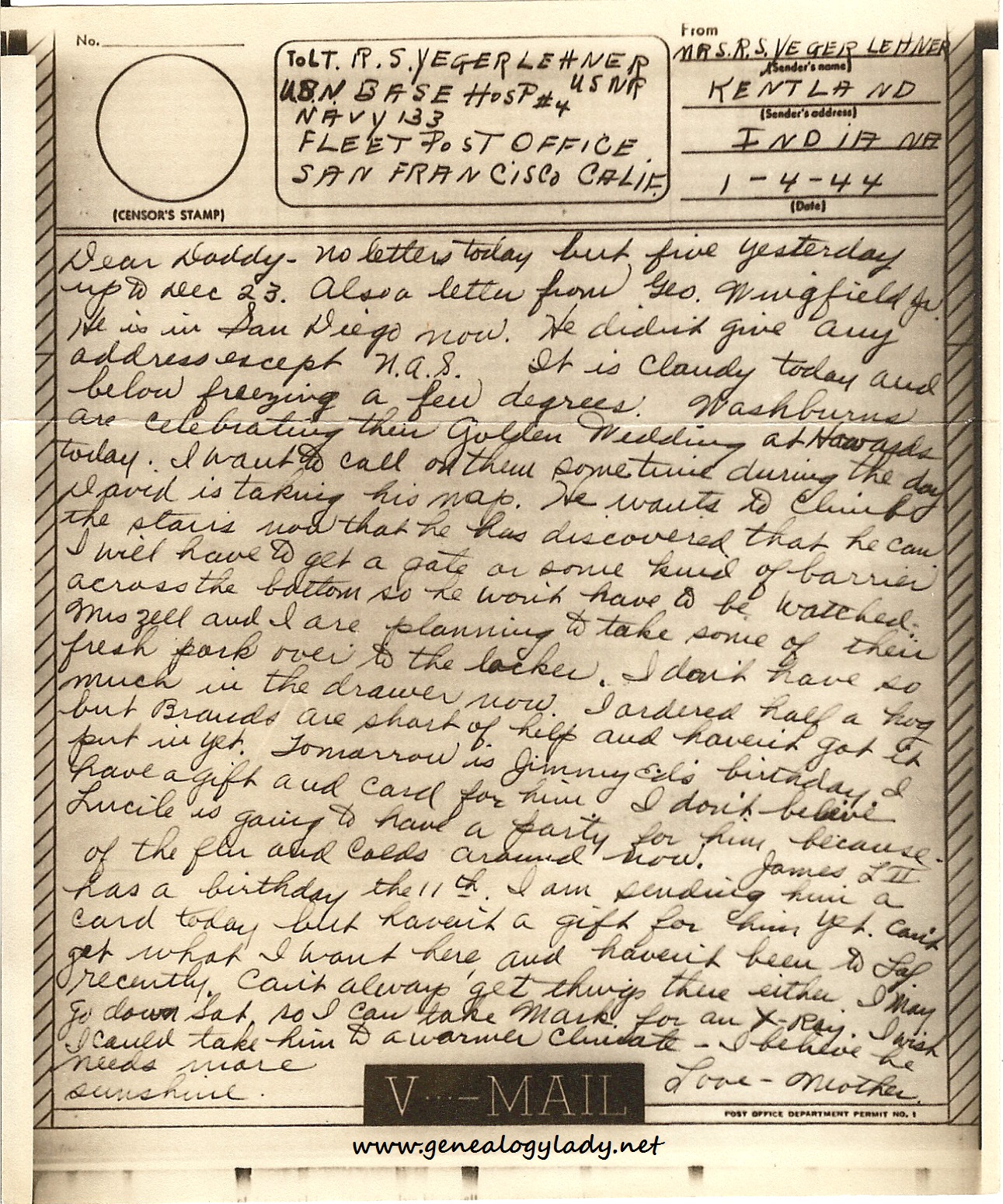 Your v-mail of Dec. 29 came today. I believe it must have arrived yesterday but just wasn’t delivered because that is the first time I’ve known mail to come on Sun.