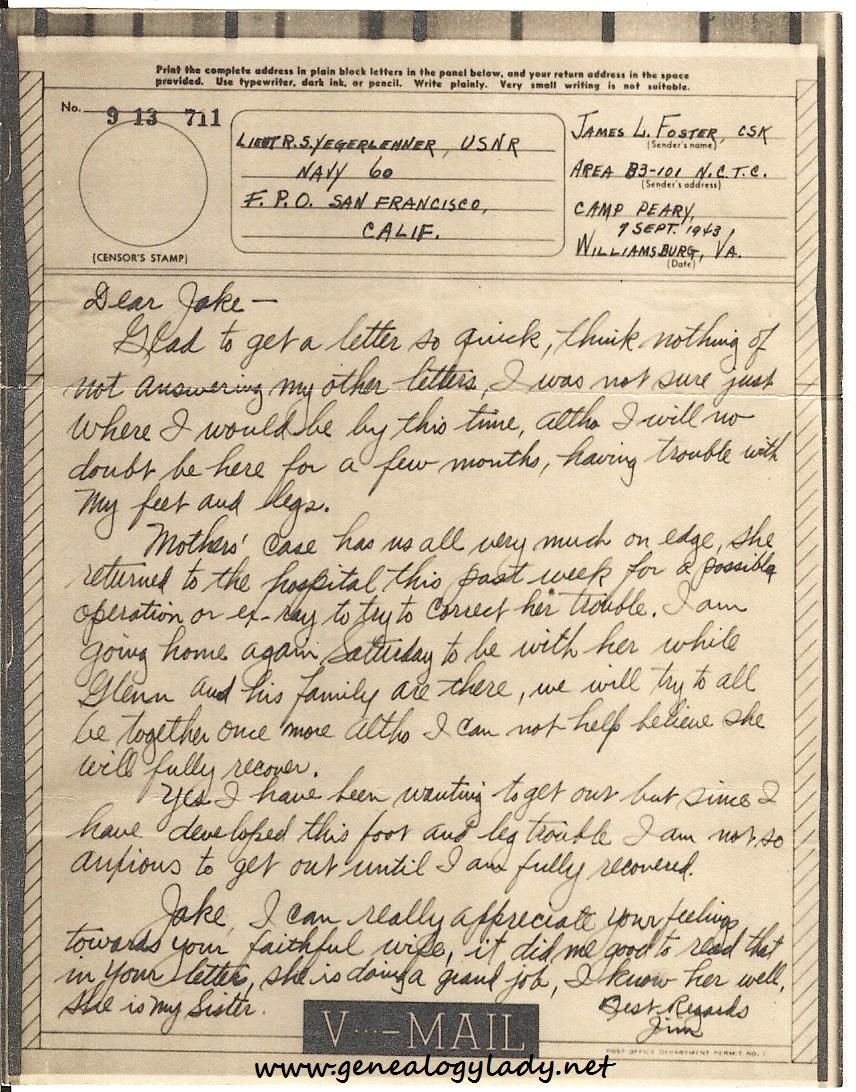 Jake, I can really appreciate your feelings towards your faithful wife, it did me good to read that in your letter, she is doing a grand job, I know her well, she is my sister.