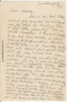 [page 2] and I can’t leave him now but could come over after school if I could do anything to help. He said he had gotten them all fed and they were pretty well taken care of then. They had Dr. M. yesterday and today. I didn’t call the Dr. to come I just asked him about giving sulfa & he told me what dosage to give and how often. David is asleep now. Hope he takes a nice long nap. I try to keep him in his bed but he gets tired of being kept up, so have to turn him loose when he gets to dissatisfied. He takes his stuffed toys and loves then, then throws them down. He pulls the lovey stuff on me too when he wants something very much. He certainly understands things we say to him. I told him he couldn’t crawl around the floor. He got down and began to crawl. I said “do you want me to put you back in your bed,” and he quit crawling. I put him on the toidey seat just as soon as he finishes his breakfast and he usually has his first B.M. I am not always lucky enough to get the next, but if I put him on the toidey after his nap he usually saves a diaper. He tries to feed himself, but to keep from wasting Pablum I give him a spoon to work with and at the same time feed him with another spoon.