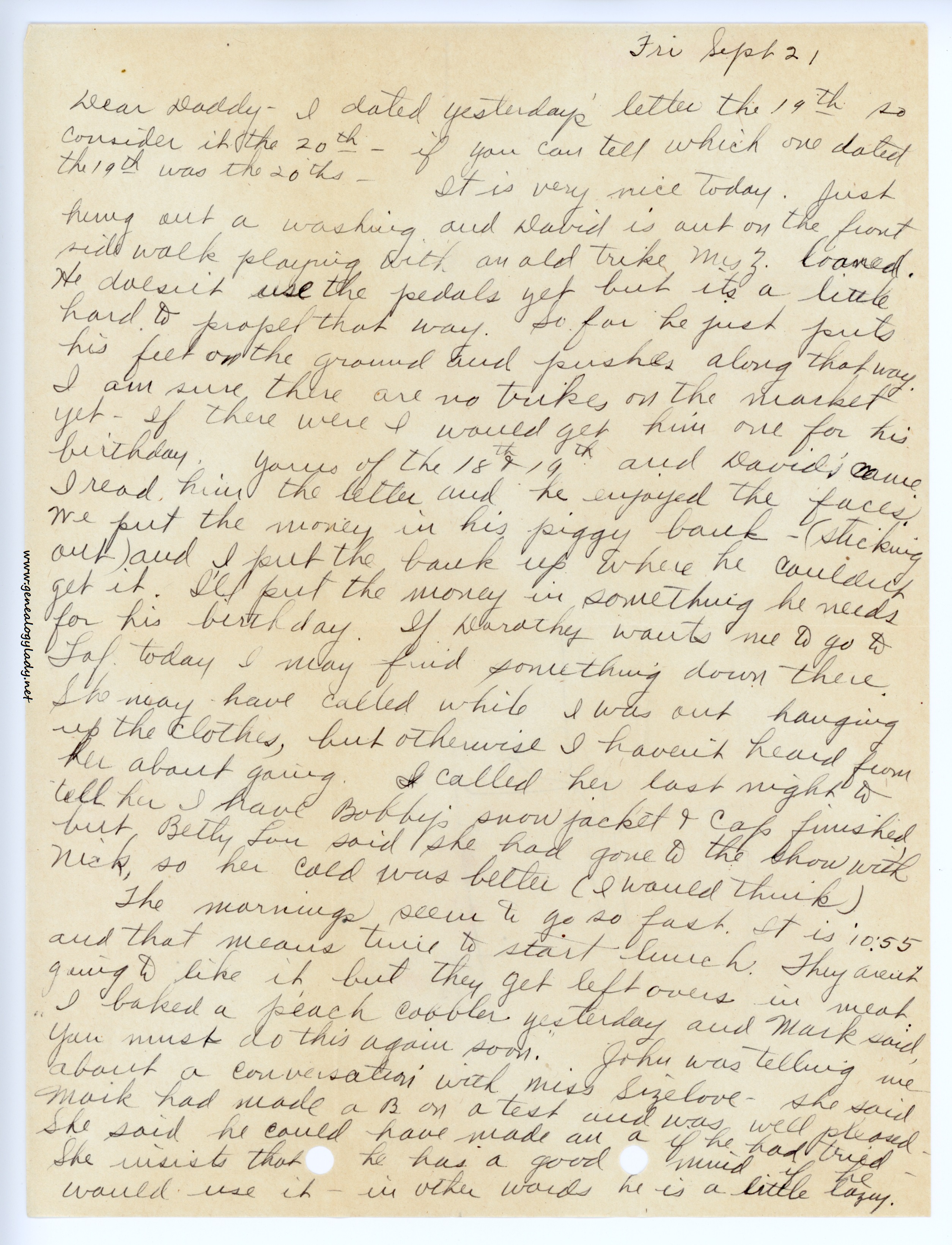 [page 2] An announcement about the 10th District Med. Soc. Fall meeting came but since you won’t be here Oct. 24 I won’t send in for reservations (ladies invited too).