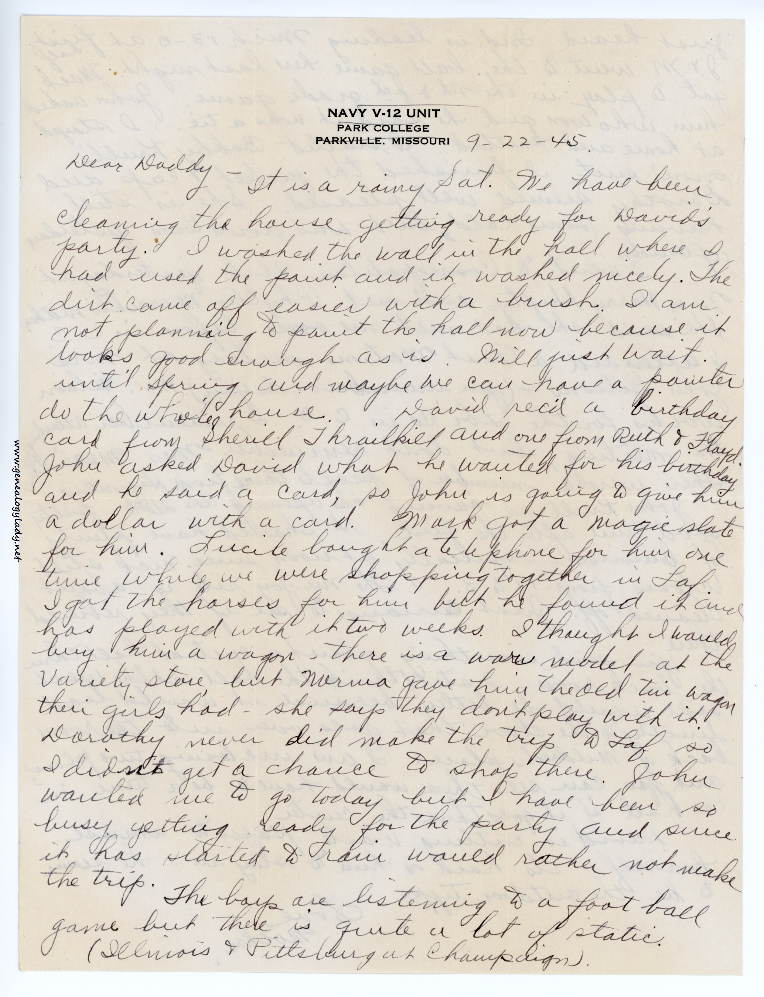 I went to Cecil Dixon’s to the A.B.C. class party last night. Everyone (almost) was asking about when you would be home. I said you would be discharged Nov. 1. Someone asked me if I had your office ready, and I said the carpenter had just started.