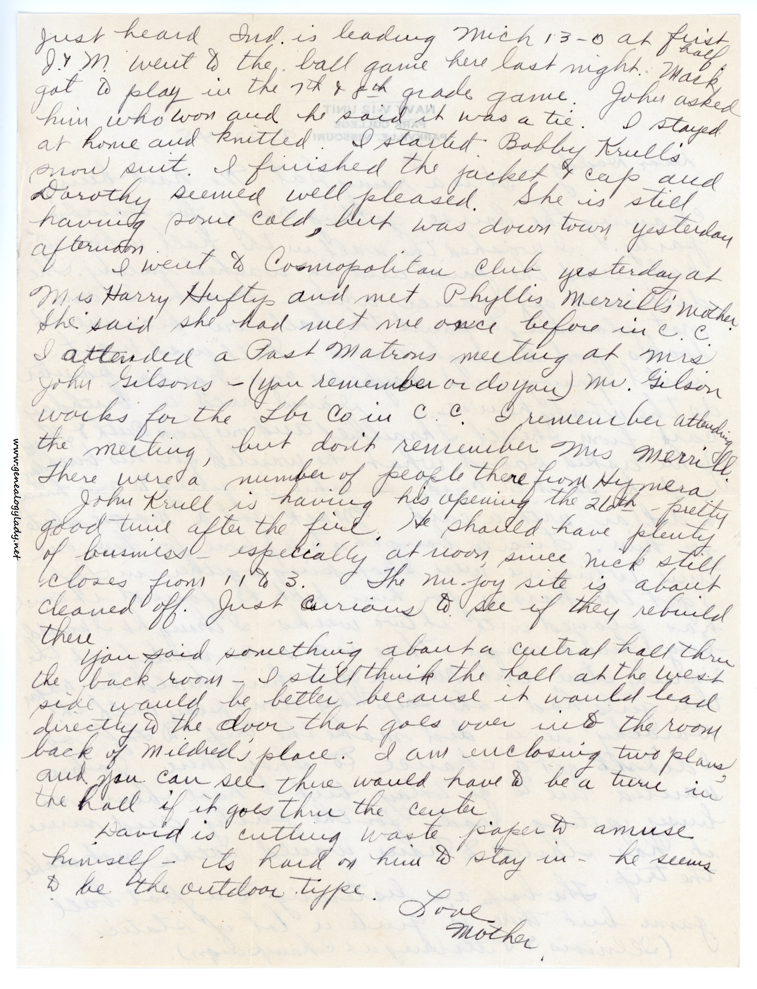 The announcement of the Nu-Joy in the Kent Estate was in the paper. They are to be ready for business by Nov. 20 – so it is taking a little longer than I had thought.