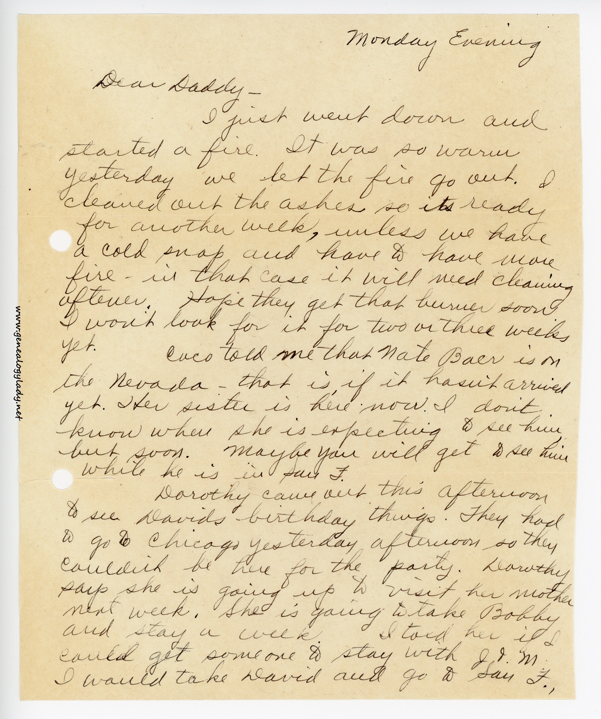Yours of the 13 & 15 came today. That one of the 13th got slowed up a little. I got the 14th yesterday. Vincent started on the office last night. I went down for a while but didn’t stay because I can’t do much until he gets through. After he gets thru I’ll get Monroe to change the heating arrangement. Even if we can’t get an oil burner for a few weeks I think we had better continue with our own heating system – because Loughridge should show what he says about Nick’s system not being adequate as is. I just told Dorothy yesterday I was going to leave that job for you – getting the heat piped over. However, by the time you get home maybe we can get an oil burner for it and just skip the idea of getting the heat from across the alley.