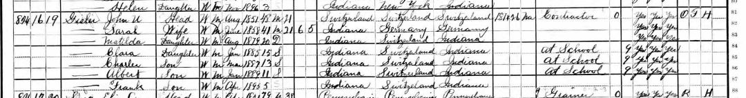 1900 U. S. Census, Marion county, Indiana, population schedule, Centre Township, ED 162, p. 1-B, John U. Gisler