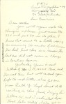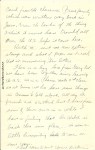 [page 2] I remember how when land was sighted we added finishing touches to letters and went ashore. How good the terra firma felt under foot again. The stamp shortage – finally after a few days we were permanently located in a goat pasture. The wild scramble to see as much as could be seen of the Island – Swimming and shell collecting – where was our mail finally after about 1 ½ months our first letters came – but no word of babies arrival. Our first letters came the day he was born, but the news reached me much later. I remember getting settled to the humdrum of routine again – Then the slicing off of our personnel. Friends leaving for different areas – The final disbanding of our unit. Then the drab months with no change in the daily schedule – day after day. Drs. P & W and I trying to amuse ourselves to keep from getting on each other’s nerves and possibly not doing so well at times – but in general doing a good job of it. Then I remember while doing the regular routine one morning a big shot coming in and motioning to me and informing me I had been selected – you can take just enough clothes for a change or two – draw field packs – field rations – first aid kits and numerous first aid bandages and emergency medical