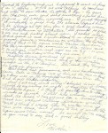 [page 2] Her “maid” is still with her. She married Shorty Davis but he lives in a trailer and I imagine she would just as soon work some place as stay in a trailer all day. She hasn’t said anything about leaving Arlene and Arlene is planning to go up to the lodge for a week and leave the children with Francis. John Funk was at the lodge working for Bill and he got sick and Bill had to go up so he wants Arlene to go up there for a week. Arlene was down to see Dr. Cole Fri. and said she invited the Coles to the lodge for a vacation. She said after she extended the invitation she thought about Rosemary who is due to go to the hospital anytime. She didn’t want to withdraw the invitation and she didn’t want to take the Dr. away from Rosemary. Arlene also told me that Bernard’s baby had been in the hospital 10 days under Van Buskirk’s care and that they had brought him home and are going to take him to Cole now – they aren’t satisfied with his condition. He still has a rattle – he almost had pneumonia.