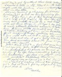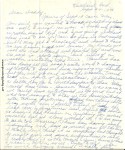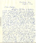 Dear Daddy – Yours of Oct. 27 & 30 came today. Some service I would say. I haven’t seen any of Hickey’s family yet to tell them his hello! I am much relieved to get your last two letters and am anxiously waiting more. Hope you are getting mine right along. I wrote Lt. Palmer a thank you note for sending the flower order to Bergens. Some of roses are still pretty. The bouquet was red roses & white mums. I got two ton of Ind. coal and with what was in the basement think we will get along for a while – at least until after the first of the year. I am keeping the thermostat at 70 in this weather but will probably set it up when real cold sets in. We had a heavy frost last nite & the temp was 29. It is warmer now. I have clothes whipping on the line. David is “loose” at present walking around the furniture & walls having quite a good time. John & Mark are trying hard to get him to say words. It’s still mostly jabbering. He has another tooth which makes seven and another about thru. Dr. Van K. is back – He is retired from the Army so I image [imagine] will re-open his office here. The Myers twins have been sent to Pensicola, Fla. for final 3 months training. Do you remember we once thought of that station? We could dream couldn’t we?