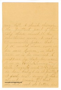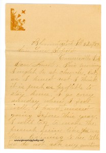 I left home Wednesday morning Sept. 22 at 6 a.m. and was met at the Depot at Bloomington by Minnie, and as the cars were very much crowded I thought best to accept the invitation to remain over night. Thad. has suffered very much for several months with a sore eye. He had his eye ball cut some six months ago. He had gone to work for the first time in months the week I saw him. His children (Lee Roy Excepted) are all doing well. Arther is a model of a young man, and Minnie is a real lady. No one could change more than has El [Eldora].