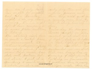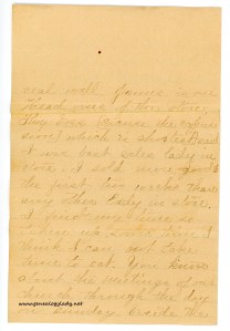[page 2] I enjoyed very much. On Thursday morning I resumed my journey arriving in Kansas City too late for the train west and put up at a hotel for the night. At 10 a.m. I took the train and crossed the State of Kan. by daylight arriving at Dodge City several hours late at 2 a.m. and went to bed. At 8 a.m. I again took up my moving tent and for 9 hours wended my way over the great Buffalo plains of the Southwest arriving at my destination at 6 p.m. Saturday.