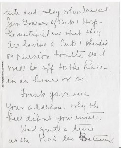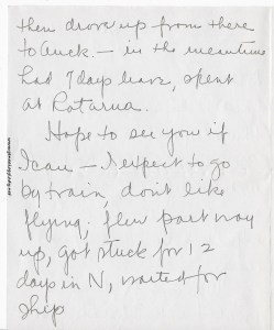 Dear Yeggie – Just one year ago last nite we made the rounds of the shopping district in Wellington. You took me down because you knew your way around the streets. I remember meeting Billie there and then seeing Howard Witter later – I don’t know whether you remember seeing Howard or not, do you? We stayed with George – didn’t we?