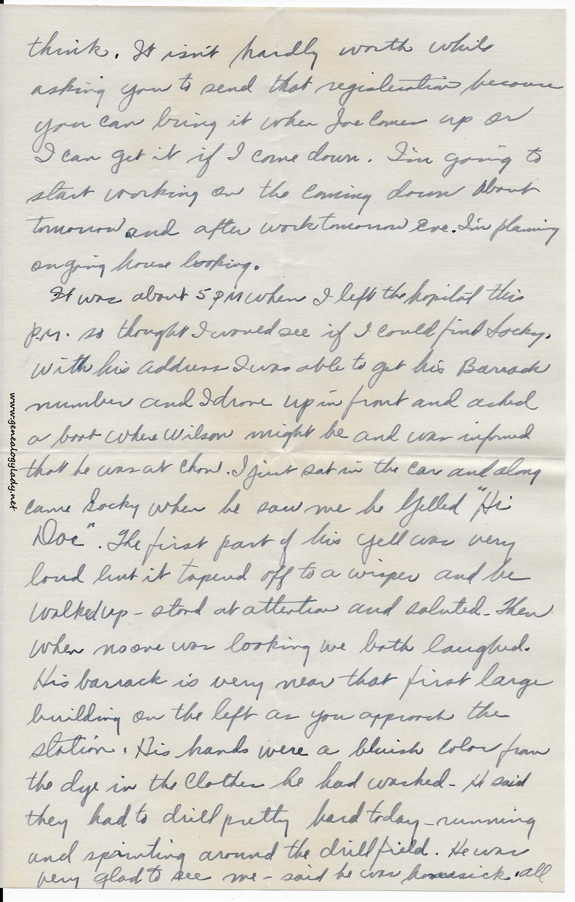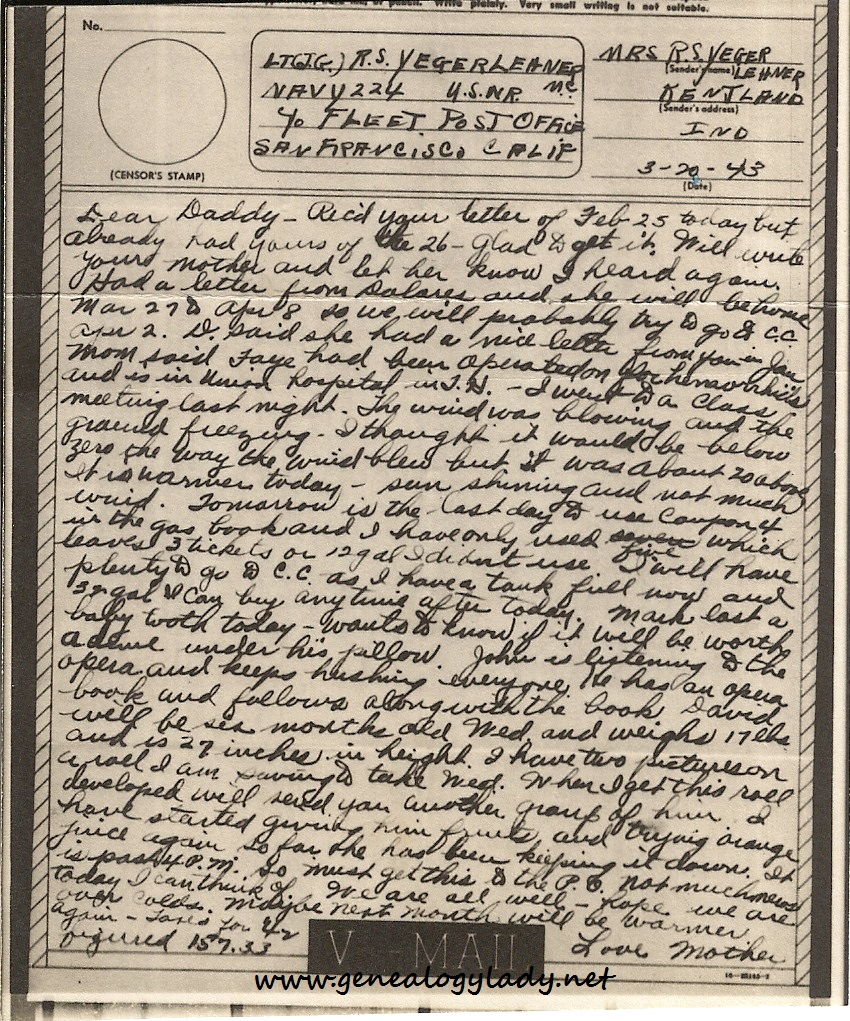Monday and the last day to buy all the gas without limit. I have the tank full so am that much ahead. Mrs. Roberts just left. She wanted to come yesterday but couldn’t. She still doesn’t know where Joe is, but thinks he is in the same area as you are in. He wrote to her not long ago that he saw a Dr. from Chicago that used to go to Watseka & operate for Wiseman – can’t remember his name – but he is in the Army. I think she said he is a Gynocologist, but he was in a jeep and drove up to hospital where Joe is. She says Joe has to wear his blue – and of course white shirts, so he is where he must “Dress.”