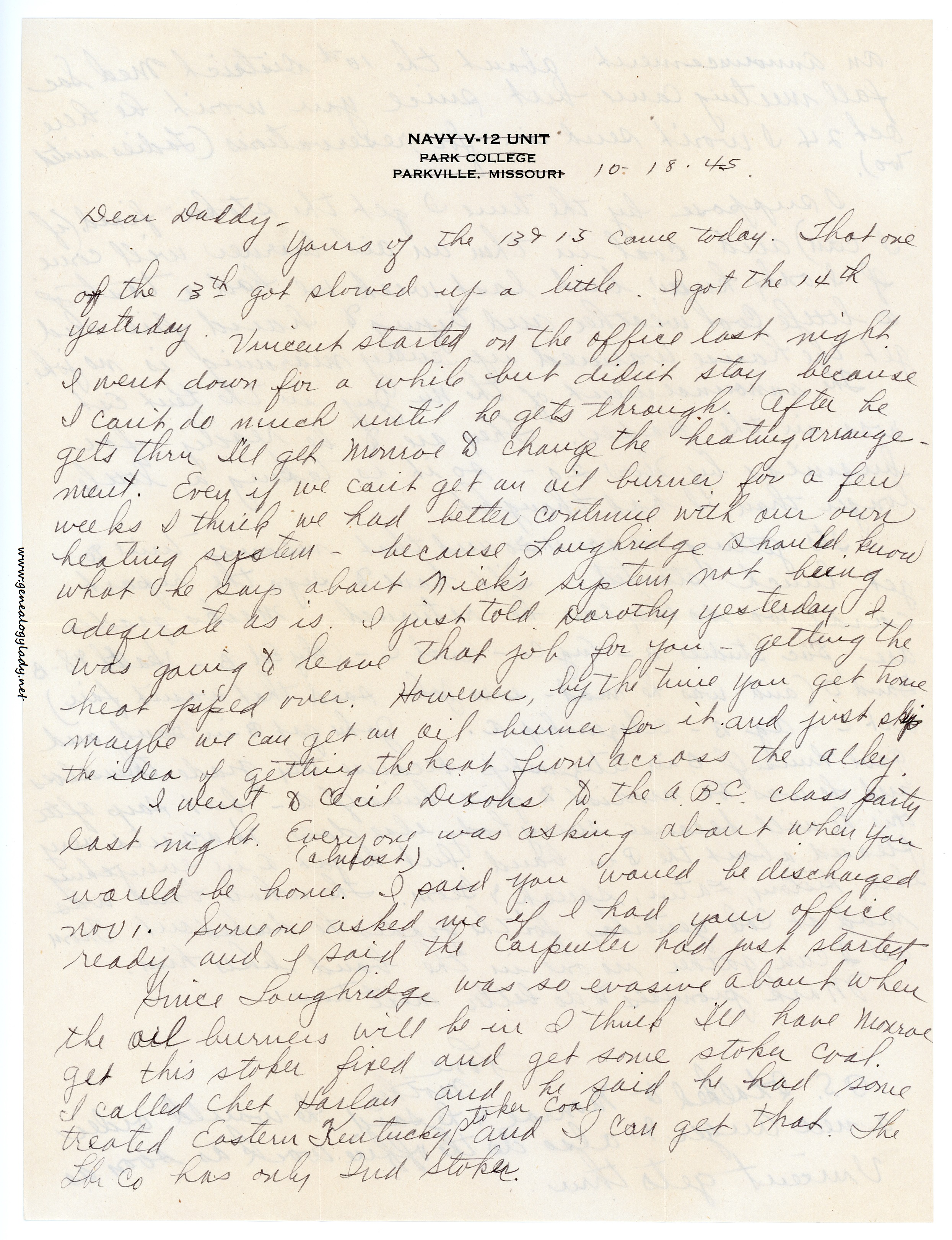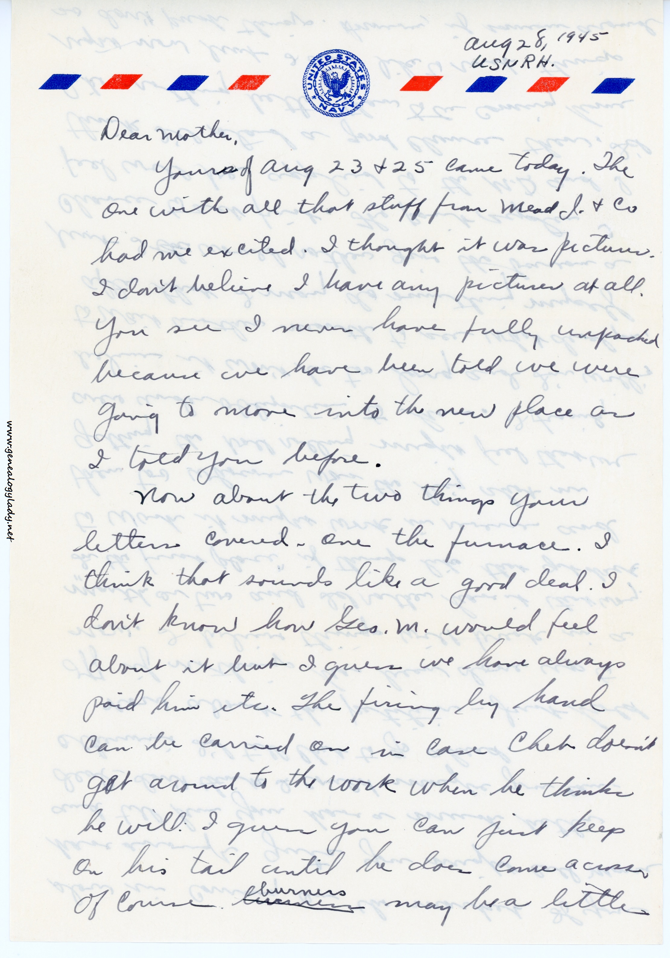 Arlene brought Bobby home. Dr. Ade took out both tonsils & adenoids. He said the adenoids were so large he didn’t see how Bobby could breathe thru his nose. The letter you wrote the 16th – mailed the 17th came yesterday the 18th.