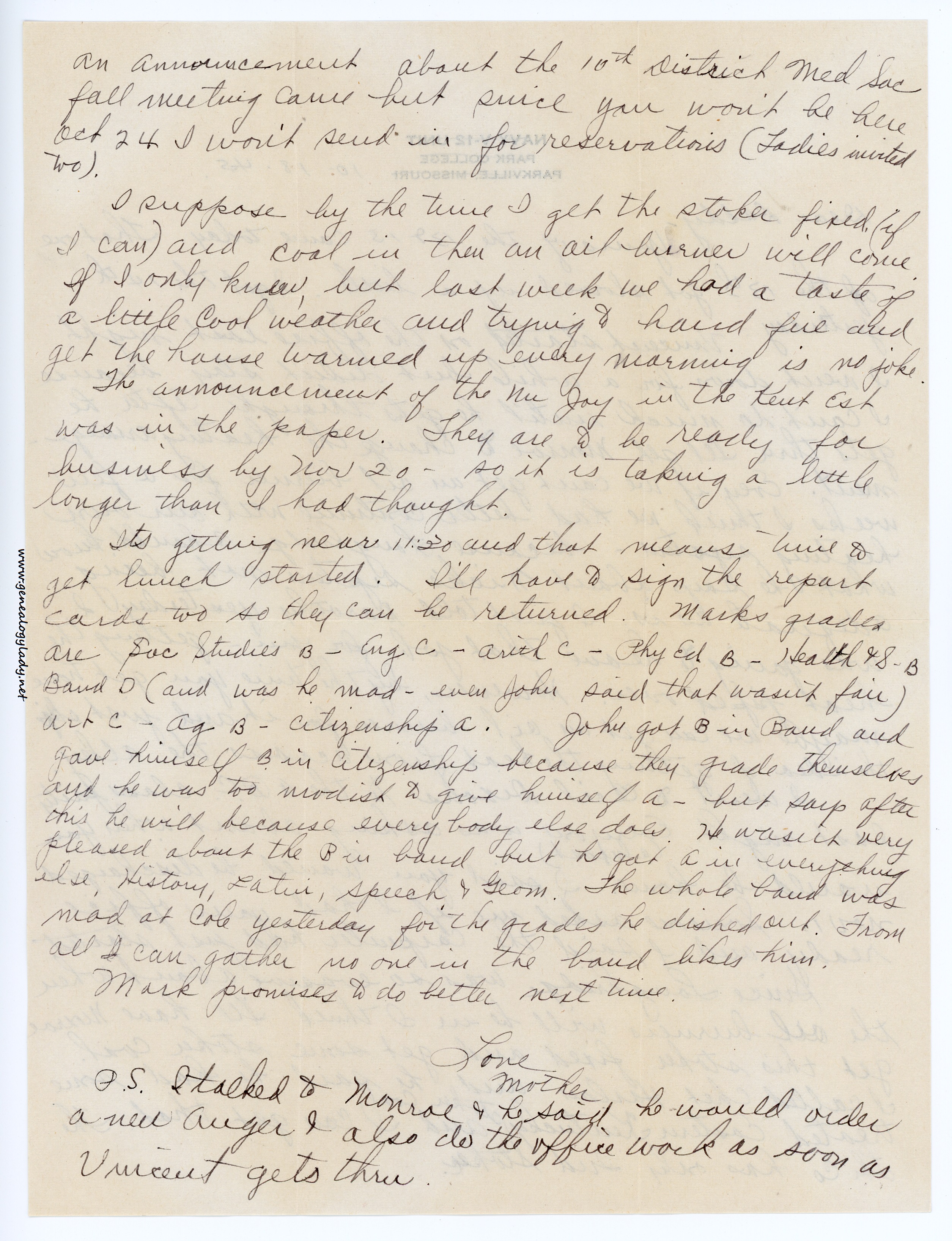 John worked on his school paper last night. They have to mimeograph their paper this year for a while. John says the Supt. Isn’t interested in the paper so he doesn’t try to help them. I do wish there was more co-operation between the Supt. & student body, but I doubt that there will be. Mr. S. seems to be disliked by every one over there.