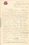 At least there is a little to write about today, because six letters came – 2 registered from you – One with the pictures – the other of Feb 7 and a v-mail Feb 19. At least that brings the news up to only about one month behind times. Also got a letter from Geo T., Bob N. and Boonie. Those I answered a few days ago – really ahead of time – when I wrote Ira D. Maybe I’ll be able to write to them individually some of these days when more paper comes floating around. Your v-mail of Feb 19, must have been written about the same time you got the word that I left the previous station and I certainly do hope my mail is coming thru to you now regularly and it should because there was only 4-5 days that writing was impossible