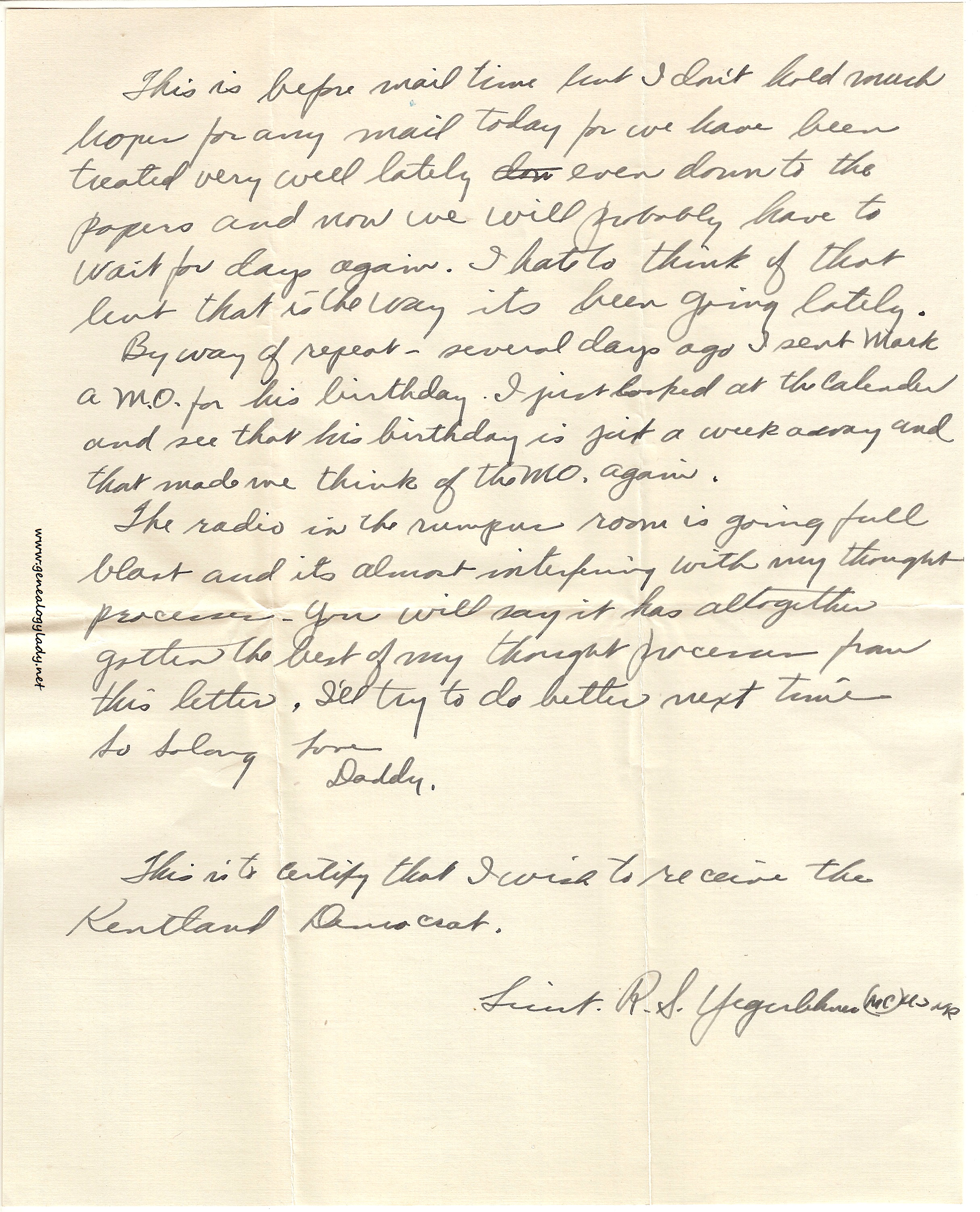 As I stated in yesterday’s letter, there wasn’t any mail. It wasn’t too disappointing because after three straight days one hardly expects mail on the fourth day.