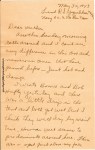 I feel I really have something to write today before I got your v-mails of 5-1, 4-26, 4-29 and your air mail of 5-3 and 5-5 – so you see our mail is better and the air mail is best. However, write a v-mail now and then because there is always a chance that that will be good. In your letter of May 3 – there was a picture of D. It of course wasn’t as good as others but I appreciated it just the same. I’d like to have a good picture of the house. Those I left behind were good but I left them as you know.