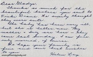 I’ll be glad when those pictures of D. arrive. It seems so many times when you are going to send pictures you write about them and the letter with the pictures are is delayed.